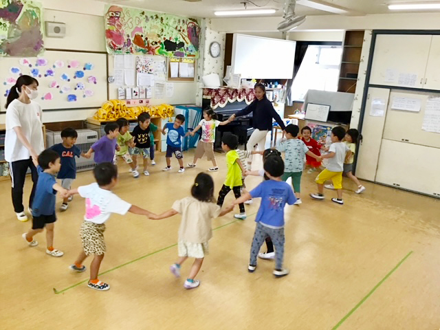 週1回異年齢児保育園をし、子ども同士のふれあい遊びの中で、意欲、助け合いそして思いやりの心を大切にしています。